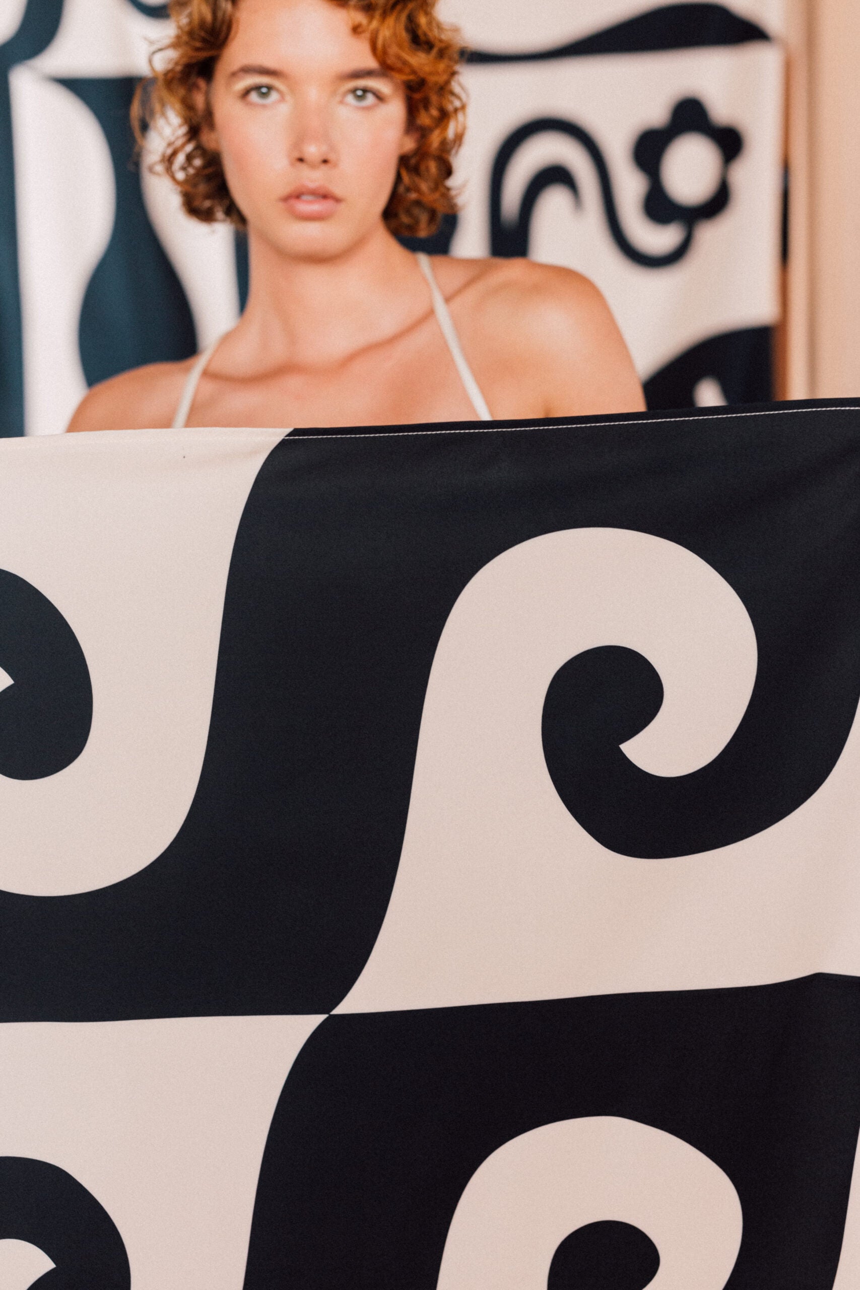 Pañuelos con ilustraciones pensadas para ser obras de arte que se pueden usar como accesorio o elemento decoraticvo para el hogar. Tiene en sus esquinas, en la parte interna unos pequeños ojales para colgarlo con clavos o ayudarse para sus distintos usos. Cada creación tiene una inspiración, esta vez fue un viaje transatlantico. Estampación ecologica com sublimación.