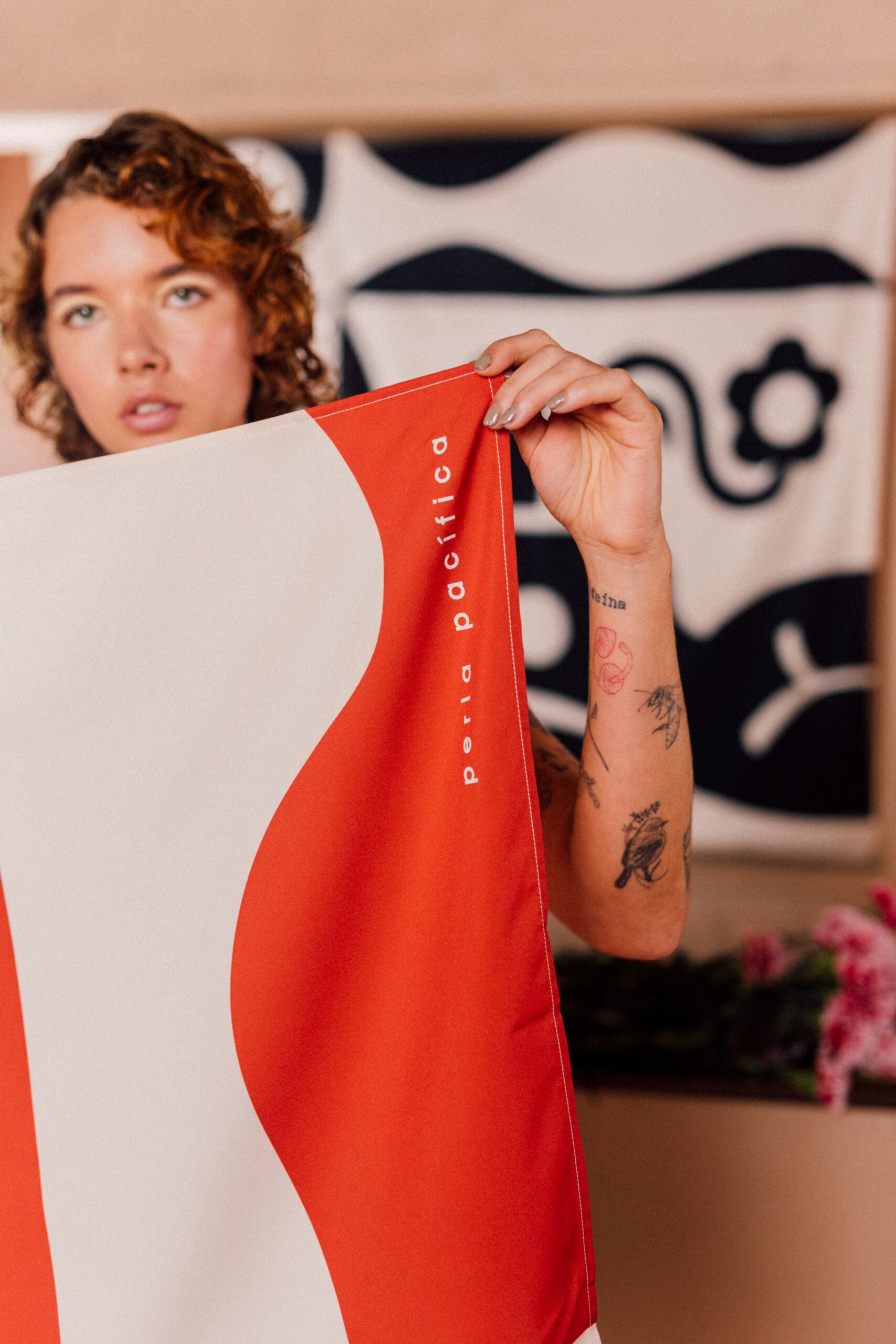 Pañuelos con ilustraciones pensadas para ser obras de arte que se pueden usar como accesorio o elemento decoraticvo para el hogar. Tiene en sus esquinas, en la parte interna unos pequeños ojales para colgarlo con clavos o ayudarse para sus distintos usos. Cada creación tiene una inspiración, esta vez fue un viaje transatlantico. Estampación ecologica com sublimación.