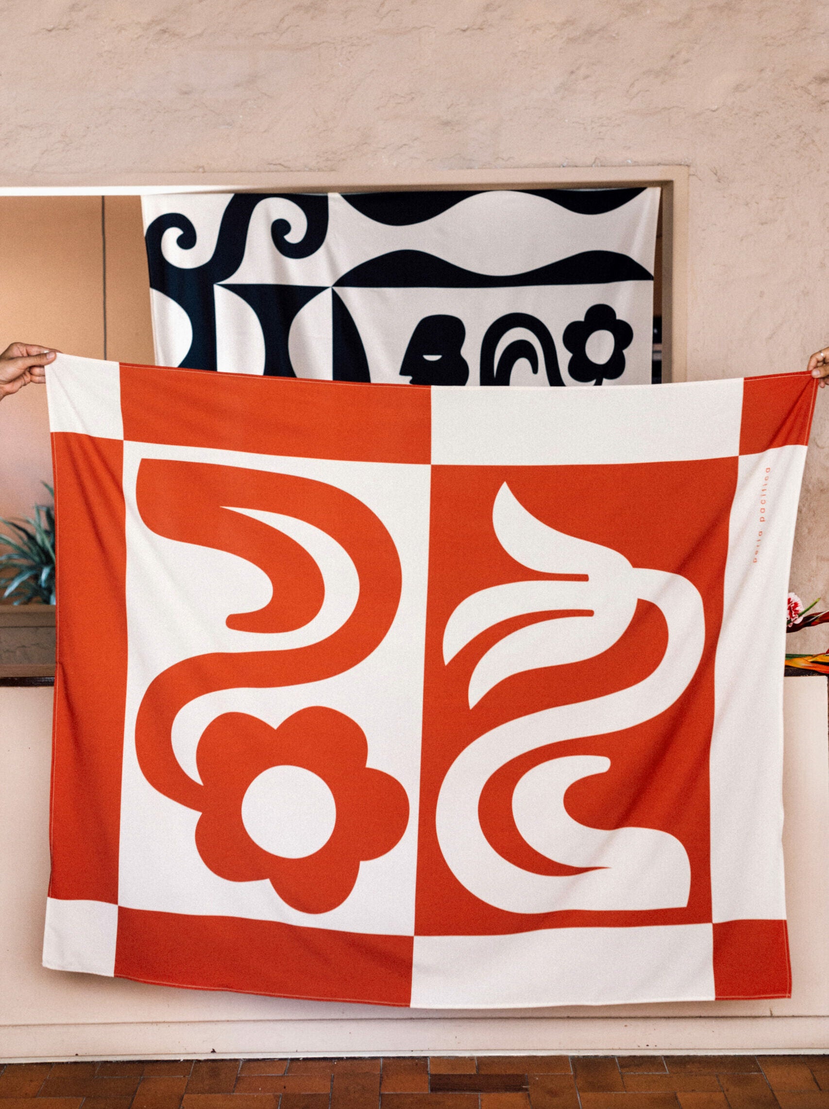 Pañuelos con ilustraciones pensadas para ser obras de arte que se pueden usar como accesorio o elemento decoraticvo para el hogar. Tiene en sus esquinas, en la parte interna unos pequeños ojales para colgarlo con clavos o ayudarse para sus distintos usos. Cada creación tiene una inspiración, esta vez fue un viaje transatlantico. Estampación ecologica com sublimación.