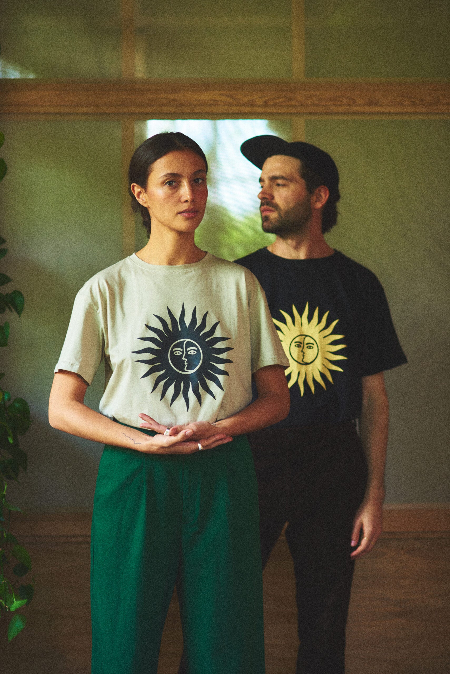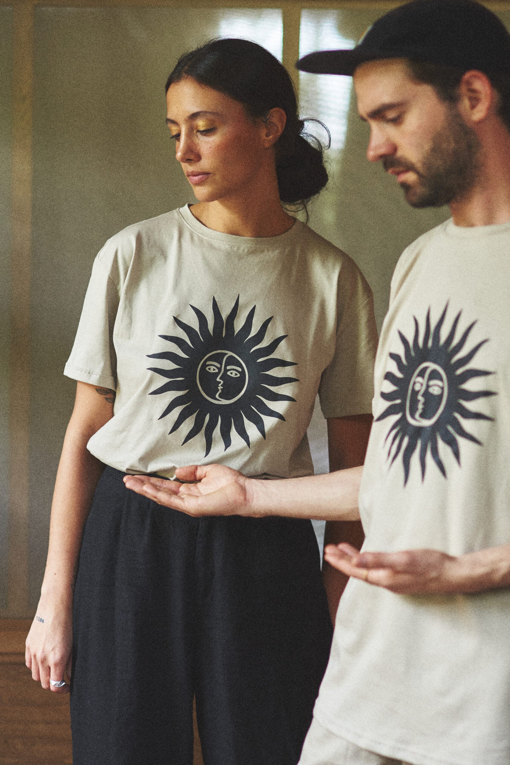 Camisetas atemporales y con una silueta regular básica que se adapta perfectamente a cuerpos de hombres y mujeres. Cada creación tiene una inspiración, esta vez fue la energía del sol y la luna.