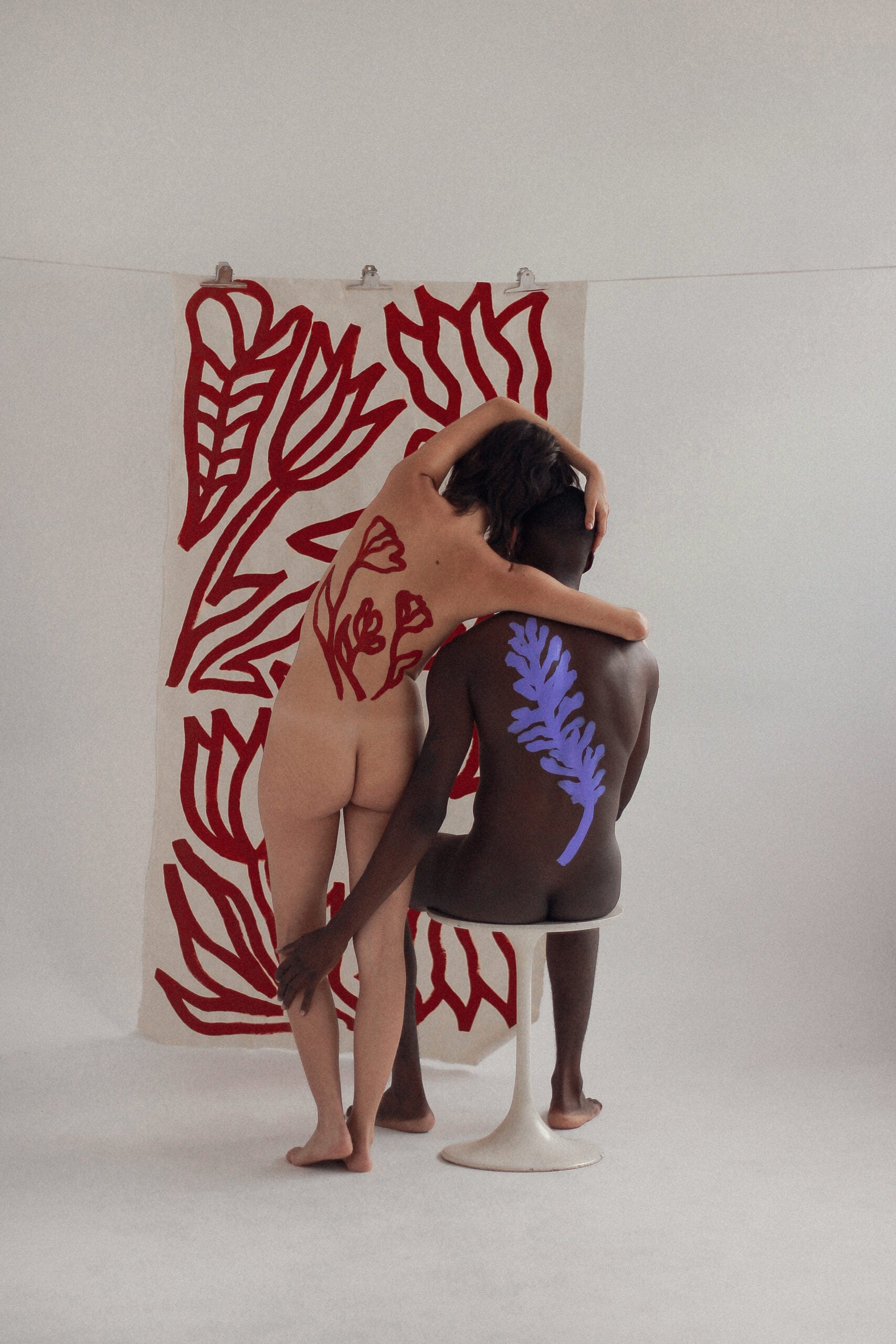 Lienzos crudos ilustrados y pintados por Perla Pacifica.